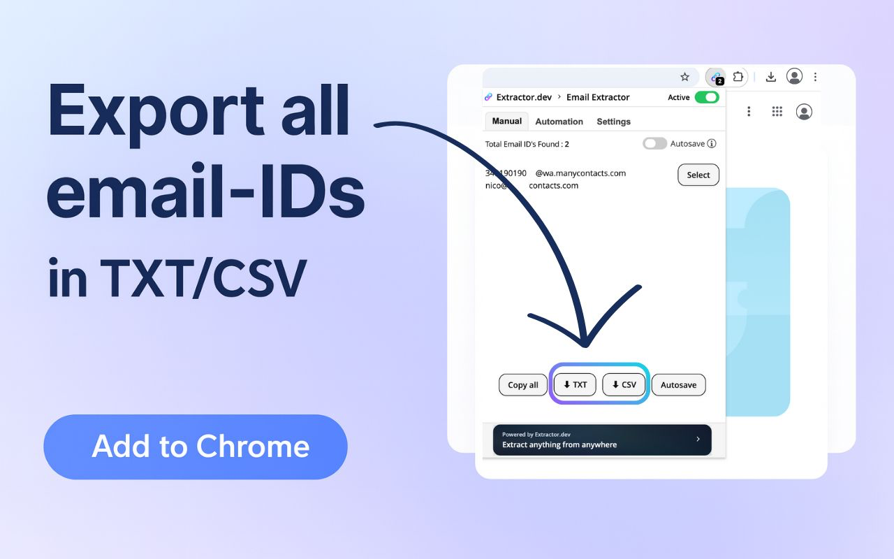 Email Extractor discovers all the email addresses on the website you are visiting.